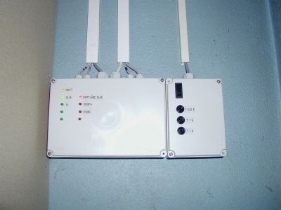 Bilden ovan visar centralenheten i systemet som är placerad i pannrummet. Centralenheten baserade jag på enchipsdatorn 68705P3 och den innehåller ingångar för 4 digitala temperaturgivare, 4 optoisolerade digitala ingångar samt 4 reläutgångar och ytterligare några oanvända i/o-portar för ev. framtida bruk. Programmet till enchipsdatorn har jag skrivit i Assembler och mönsterkortskonstruktionen har jag gjort i AutoCad.