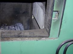De första dagarna när jag körde igång brännaren hade jag tagit bort baffeln som syns i mitten av bilden ovan, eftersom jag fått höra att draget annars kunde bli för dåligt i min typ av panna. Men det dröjde inte länge innan jag insåg att detta var mycket oekonomiskt, inte minst då jag märkte att rökgastemperaturen kunde komma upp i betydligt över 300 grader. Jag satte dit baffeln igen och det sänkte genast rökgastemperaturen under 250 grader, utan att jag för den skull fick problem med draget. Jag hade även problem i början med att lågan var så kraftig att den slog över i veddelen, men efter att jag justerade ner effekten på brännaren minskade detta problem och rökgastemperaturen sänktes ytterligare. På min brännare har jag tidigare valt bort lågeffektläget, eftersom rökgastemperaturen vid lågeffektdrift blev så låg att misstänkte att det skulle bli kondensutfällning i skorstenen, åtminstone när pannan var nysotad, men senare har jag även provat att ha lågeffektläget aktiverat utan att få problem.
