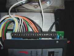 Vid ett tillfälle stannade, några månader efter att min brännaren var installerad, den helt oförklarligtoch när jag upptäckte detta försökte jag att starta den igen. Brännaren tände som vanligt och brann sedan i några minuter för att sedan stanna och göra ett återstartsförsök, trots att det brann för fullt. Det hördes tydligt att pelletsen forsatte att brinna efter att brännaren stannat och påbörjat återstarten. Proceduren upprepades två gånger och sedan stannade brännaren helt och lysdioden märkt "Driftstopp" tändes. Jag lät brännaren svalna och började felsöka. Jag var helt övertygad om att det var fotocellen, den s.k. flamvakten som blivit smutsig, men när jag tagit ut den fann jag att den var helt ren. Jag monterade tillbaka flamvakten igen vilket inte visade sig vara det enklaste då den var monterad med hjälp av en fjäder som inte ville tillbaka från det håll som jag demonterat den ifrån. Jag blev även tvungen att skruva bort kablarna till fotocellen från skruvplinten som syns på bilden ovan, och då upptäckte jag att hela skruvplinten satt snett på stiftlisten under. Den var naturligtvis bara att trycka tillbaka, så reparationen tog bara några sekunder, men felsökningen tog över en timme. Om skruvplinten var illa monterad från början eller om den vibrerat loss under transport eller under drift lär jag aldrig få reda på. Samma fel inträffade ytteligare en gång någon månad senare förmodligen beroende på att jag inte tryckte dit skruvplinten tillräckligt. Sedan dess har det aldrig inträffat igen. Eftersom jag nu känner till detta ser jag det inte som något större problem om det skulle hända igen.